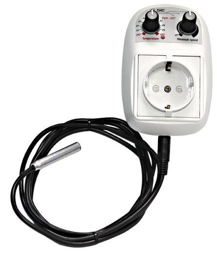 Działa on na zasadzie zmiany wydajności wentylatora gdy temperatura przekroczy wyznaczony punkt o 2st. Celsjusza. Przy zbyt wysokiej temperaturze, sterownik przyspieszy obroty łopat wentylatora, gdy temperatura się ustabilizuje na żądanym przez nas poziomie, wentylator wróci do wcześniej ustalonych obrotów. Czujnik załączony w zestawie ma kabel o długości 4m, gdyby był niewystarczający można go przedłużyć do 50m, z zachowaniem szczególnej uwagi podczas demontażu starego, montażu nowego przewodu jak i pierwszego uruchomienia ponieważ niepoprawny montaż może uszkodzić podzespoły urządzenia.
