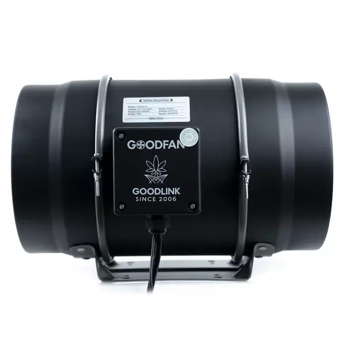 Wentylator kanałowy marki Good Fan to konstrukcja o mieszanym przepływie w połączeniu z silnikiem EC, który napędza wysokiej jakości wirniki. Poprzez zastosowanie tych technik wentylator jest jest bardziej energooszczędny niż inne wentylatory tego typu. Przy mocy zaledwie 180 watów zapewnia silny przepływ powietrza do 1400 m3/h na bardzo niski poziomie hałasu (wytwarza tylko 51 DB). Lekkie łopatki wykonane z tworzywa ABS zmniejszają opór przepływu, co zwiększa przepływ powietrza o 30%.
