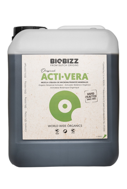 -BIO-BIZZ Acti-Vera, jest w 100% organicznym stymulatorem, który chroni układ odpornościowy, zwiększa metabolizm oraz zwiększa wchłanianie składników odżywczych. -Acti-Vera działa od wewnątrz, sprawia że w środku roślina jest zdrowa i silna, dzięki czemu w tym samym czasie tak wspaniale wygląda na zewnątrz -Najważniejszym czynnikiem odróżniającym produckt Acti-Vera od reszty asortymentu firmy BIO-BIZZ jest to, iż powstał on "z roślin dla roślin" -A więc od teraz BIO-BIZZ oferuję wam produkty pochodzące z ziemi, morza oraz roślin -Dawkowanie: 20 do 50ml/10 litrów wody -Pojemność 5L