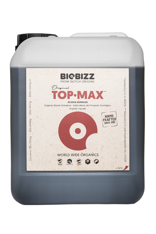 -TopMax jest w 100% roślinnym, organicznym stymulatorem kwitnienia. -Powoduje szybszy podział komórek podczas fazy kwitnienia i wzmaga produkcję cukrów co zwiększa ilość i jakość kwiatów oraz owoców. -Chroni kwiatostany przed pleśnią i gniciem. -Wpływa na obniżenie pH gleby i wypłukuje osad solny z okolicy korzeni. -stosowanie: ziemia, hydroponika, w połączeniu z nawozami - Dawkowanie: 20 do 50ml/10 litrów wody -pojemność: 5 litrów