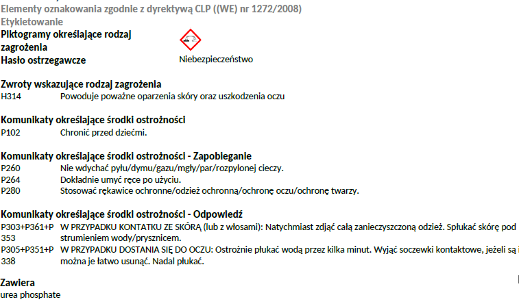 Dry pH Down jest specyficznym produktem : w postaci suchej jest nieszkodliwy. Po zmieszaniu z wodą staje się silnym reduktorem pH, skuteczniejszym od większości skoncentrowanych, niebezpiecznych kwasów.